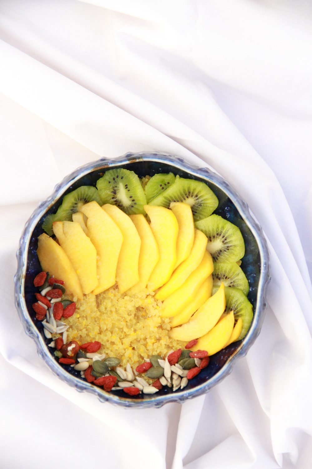 Recheie as tarteletes com o puré. Polvilhe com ingredientes a gosto como frutos vermelhos, mel, sementes de chia, amêndoas laminadas tostadas ou raspas de chocolate.