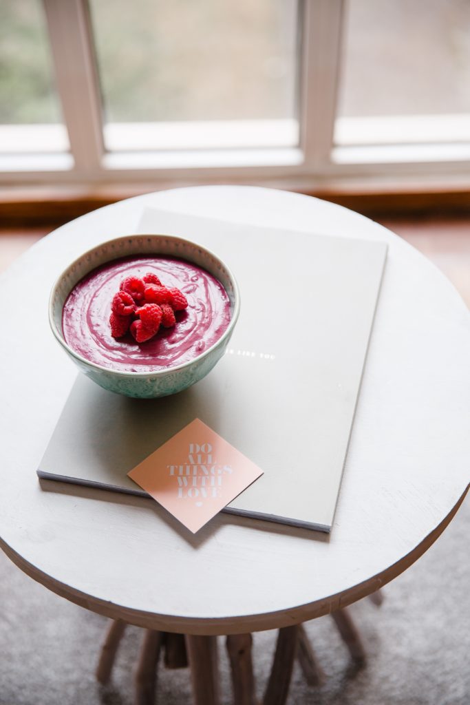 Mousse de framboesas e açaí sem glúten, sem leite e sem açúcar
