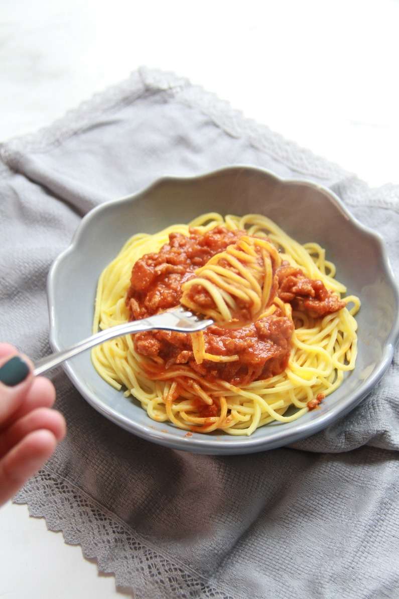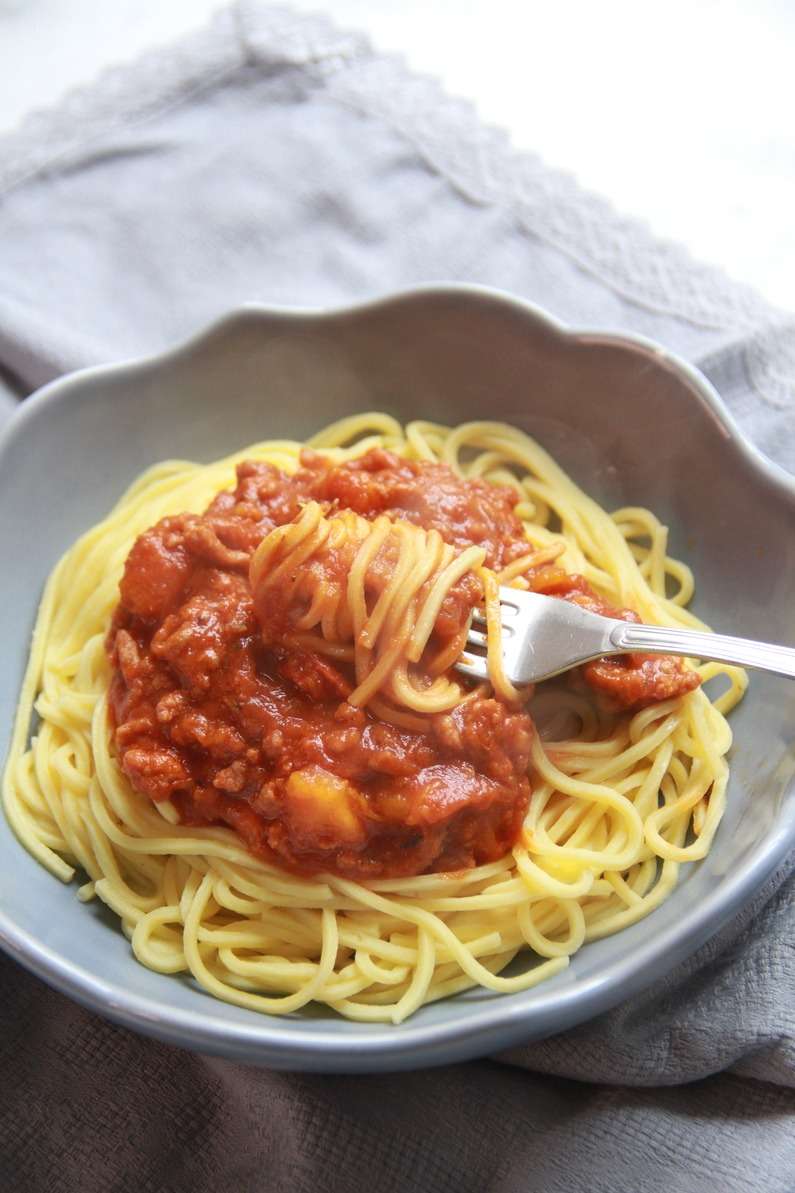 Bolonhesa de abóbora caramelizada e carne picada com massa fresca