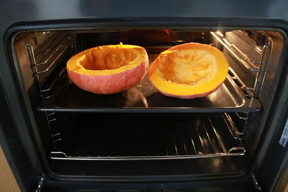 Levei a abóbora limpa ao forno a 150ºC durante 25 minutos e, a partir daí fiz 3 coisas: