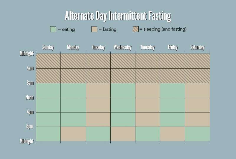 Uma outra forma de fazermos jejum é em dias alternados mas durante mais horas (16h a 20h. A vantagem é que podemos ir fazendo dias de refeições alternados, o que é bom para quem tem muita dificuldade em saltar o pequeno-almoço. Além disso, supostamente, com mais horas de jejum, aumentamos os benefícios do processo.