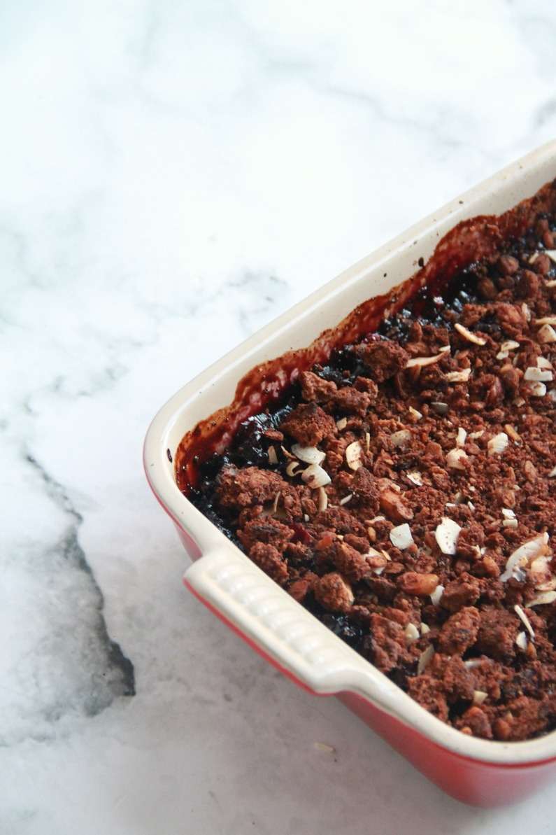 Quando dou jantares cá em casa, a expectativa para as receitas saudáveis e saborosas é elevadíssima! Mas, confesso que a pressão é algo que me dá um certo gozo e me faz querer inventar sempre coisas novas e diferentes. Por isso, uma das ultimas invenções foi este crumble de granola e cacau mega bom! Espero que gostem e partilhem comigo os resultados.