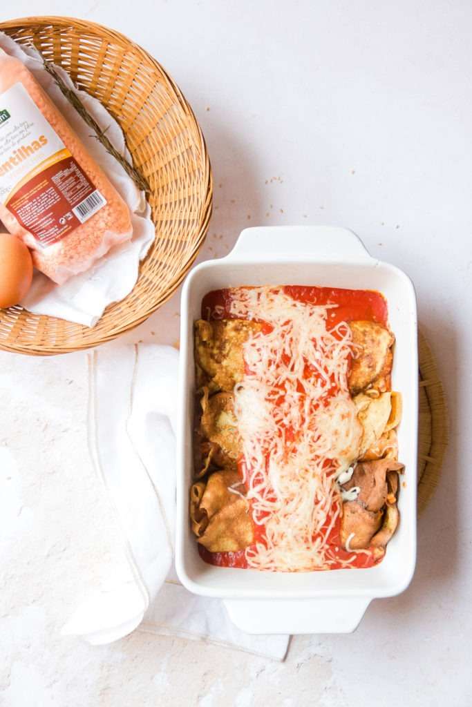 5. Untar um tabuleiro de forno com um fio de azeite. Rechear cada um dos crepes com o preparado de lentilhas.