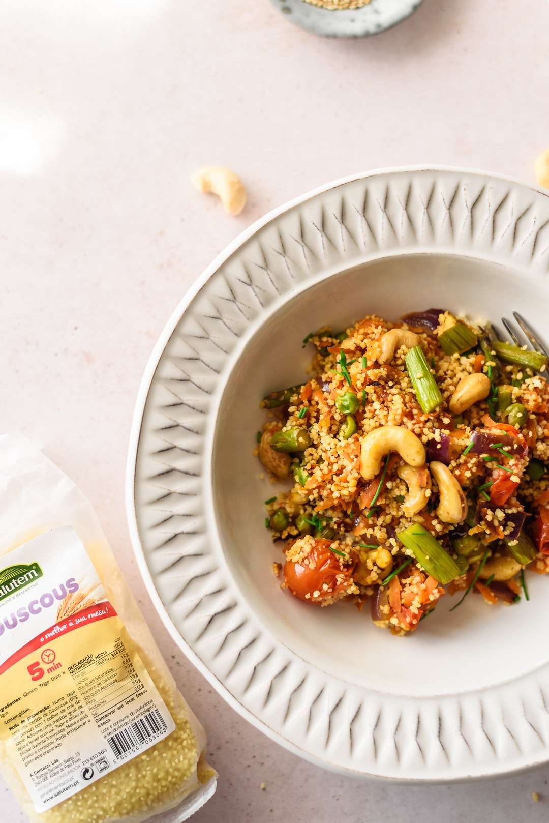 3. Enquanto isso, preparar os crepes. Numa taça misturar os ovos, a bebida de amêndoa e bater. Juntar depois o alho em pó, a flor de sal e a linhaça e bater bem.