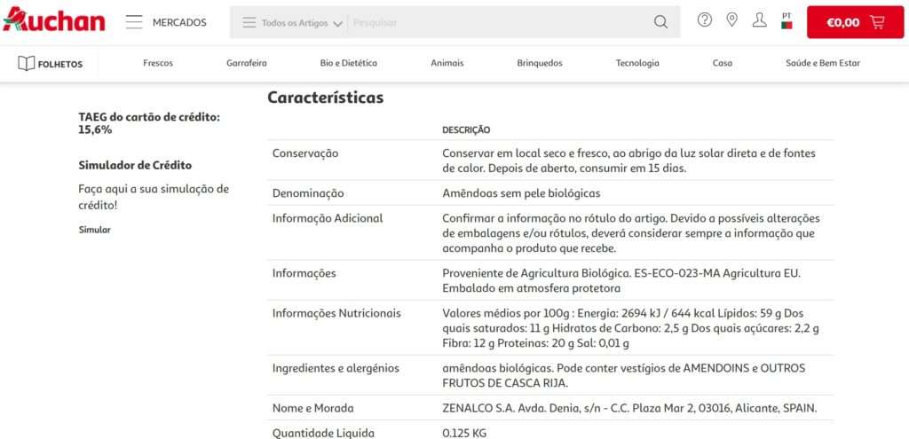 Várias são as cadeias comerciais que disponibilizam essa informação. Por exemplo, no site do Continente ou da Auchan pode adquirir o seu produto alimentar e verificar a informação nutricional deste.
