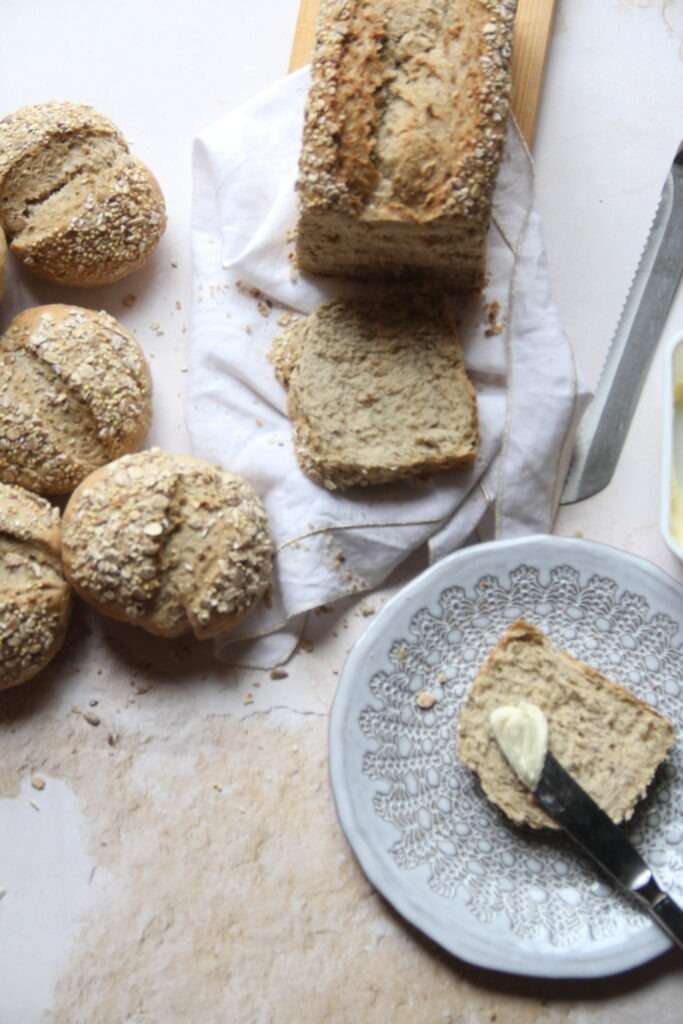 - Corte a parte superior das bolinhas de pão e retire o miolo. Reserve para fazer depois açorda ou hambúrgueres vegetarianos.