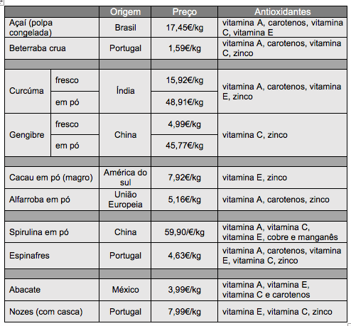 Importa referir, que apesar de todos estes estarem disponíveis no mercado em Portugal, muitos superalimentos são produzidos em países muito distantes, como por exemplo a quinoa, que tem como principais produtores o Perú e a Bolívia. (2)Deste modo, para chegarem até nos, estes alimentos têm de ser processados, embalados e distribuídos, processos esses que têm um impacto negativo no meio ambiente. Para além disso, a crescente procura por estes produtos, faz com que, em muitos casos, estes não sejam produzidos seguindo as práticas tradicionais, mas sim práticas de produção agrícola intensiva, que também são responsáveis por deixar uma grande pegada ecológica. (2) Porém, é possível contornar este ponto negativo, uma vez que, há superalimentos com origem em Portugal, e na grande maioria das vezes com preços bastante mais acessíveis, por isso não há necessidade de optarmos pelos mais caros e menos sustentáveis para enriquecer a nossa alimentação, tal como pode verificar na tabela que se segue (tabela 1).