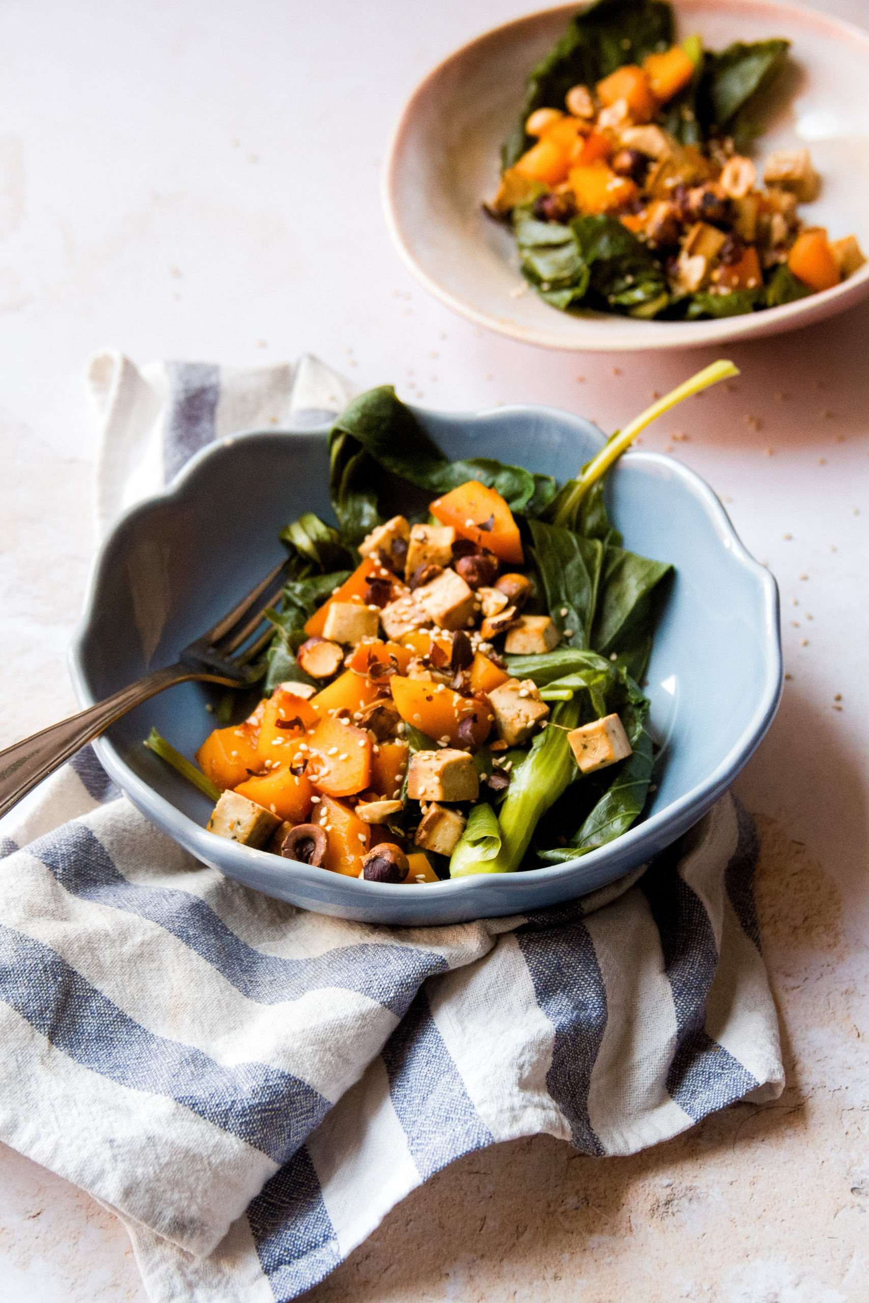 2. Preparar a marinada: numa taça adicione o molho de soja, o sumo de meio limão, o alho em pó, a paprika e o gengibre em pó. Adicione o tofu cortado em cubos, envolva beijinhos enormes na marinada. Tape e deixe a marinar no frigorifico por pelo menos 30 minutos.