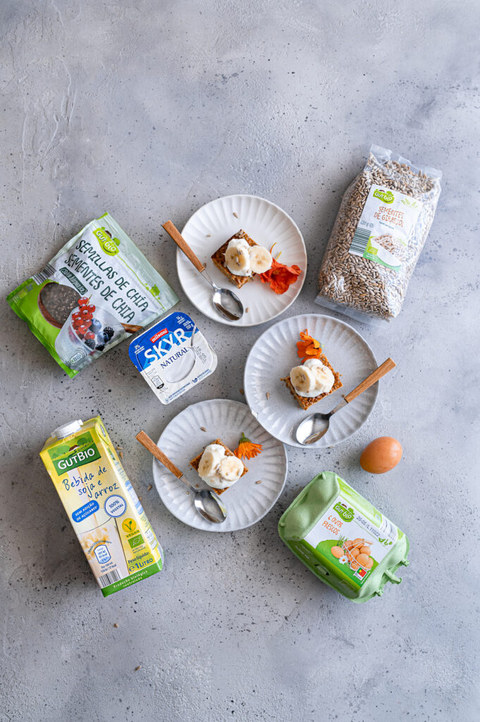- Para servir, coloque o iogurte skyr por cima e sirva com rodelas de banana.